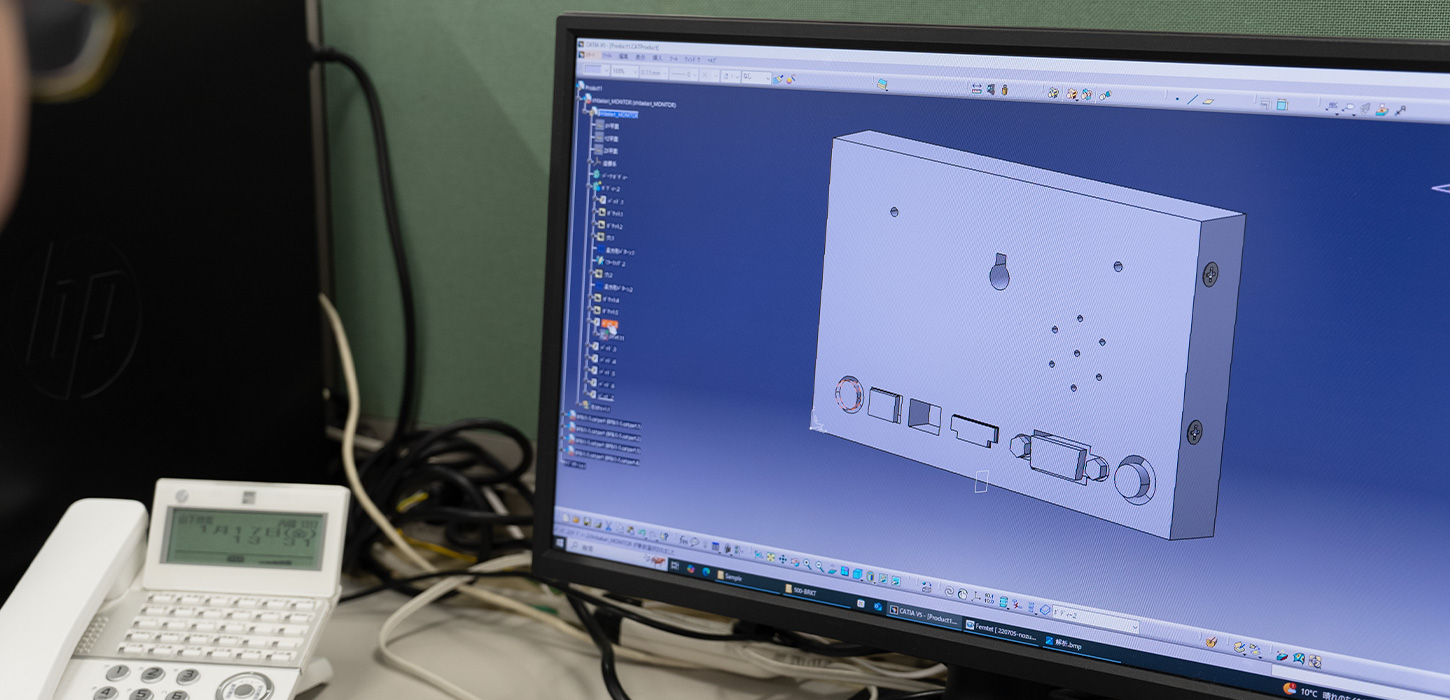 私の業務は、CADを使った設計です。例えば、お客様から『この機種の振動試験をしたい』という要望があれば、試験機と製品を接続するための中間部品の設計を担当します。まず図面を作り、上司に確認をもらい、修正を重ねながら完成形へと仕上げていきます。設計だけでなく、資料作成やお客様への提案も行い、トータルで仕事を学んでいます。